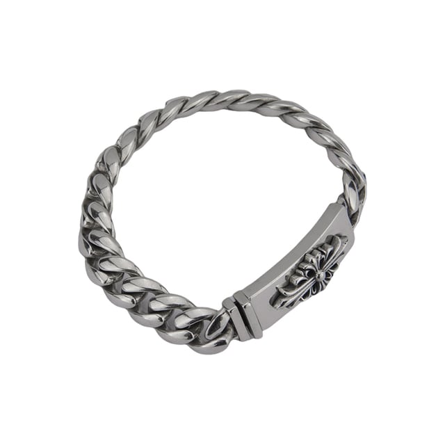 個性的なクロスデザインの925純銀パンク風ブレスレット。