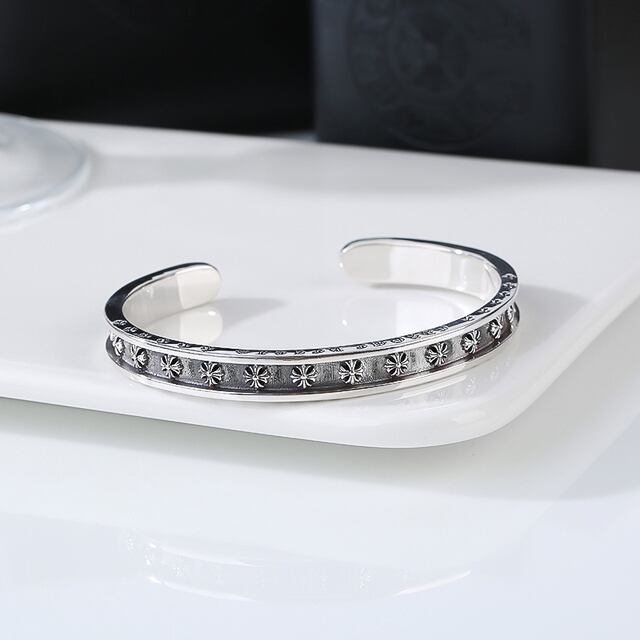 クロスパンク純銀ブレスレット男女の個性を引き出す欧米パンク風レトロ925タイシルバー開口ブレスレット