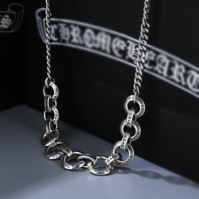 925シルバー個性鎖骨チェーンネックチェーン925純銀レトロアルファベットリングネックレス男女カップルムチチェーン