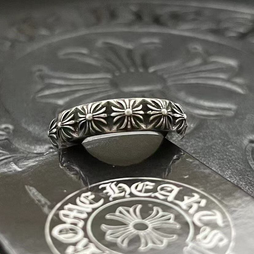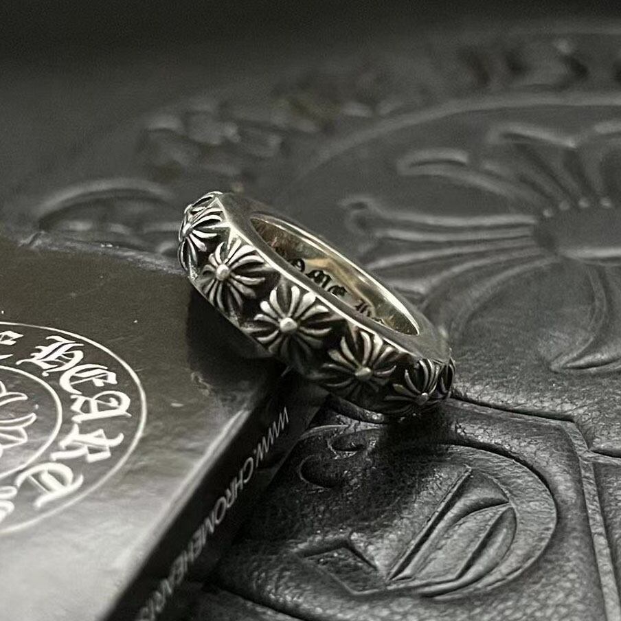 エクストリームレトロなシングルレイヤーフルクロスフラワーリング、男性用と女性用のパーソナライズされたヒップホップドミネーションリング、クラシックでアンティーク調スタイル