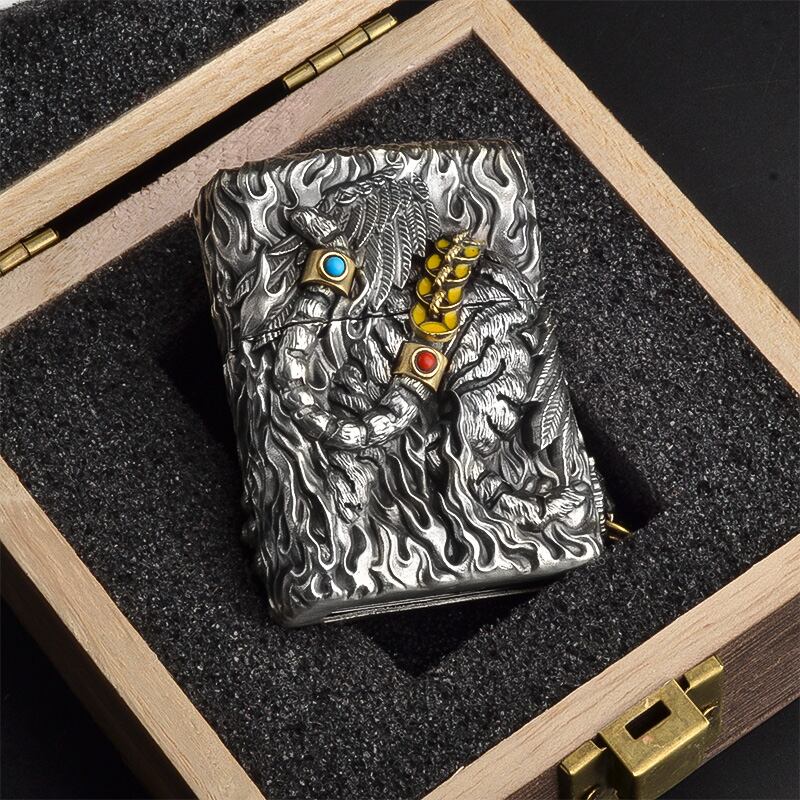 本物のジッポーライター、ヘビーアーマー、虎の翼のような彫刻、回転する宝くじボール、イヤーオブザタイガーコレクターズエディション、灯油、防風