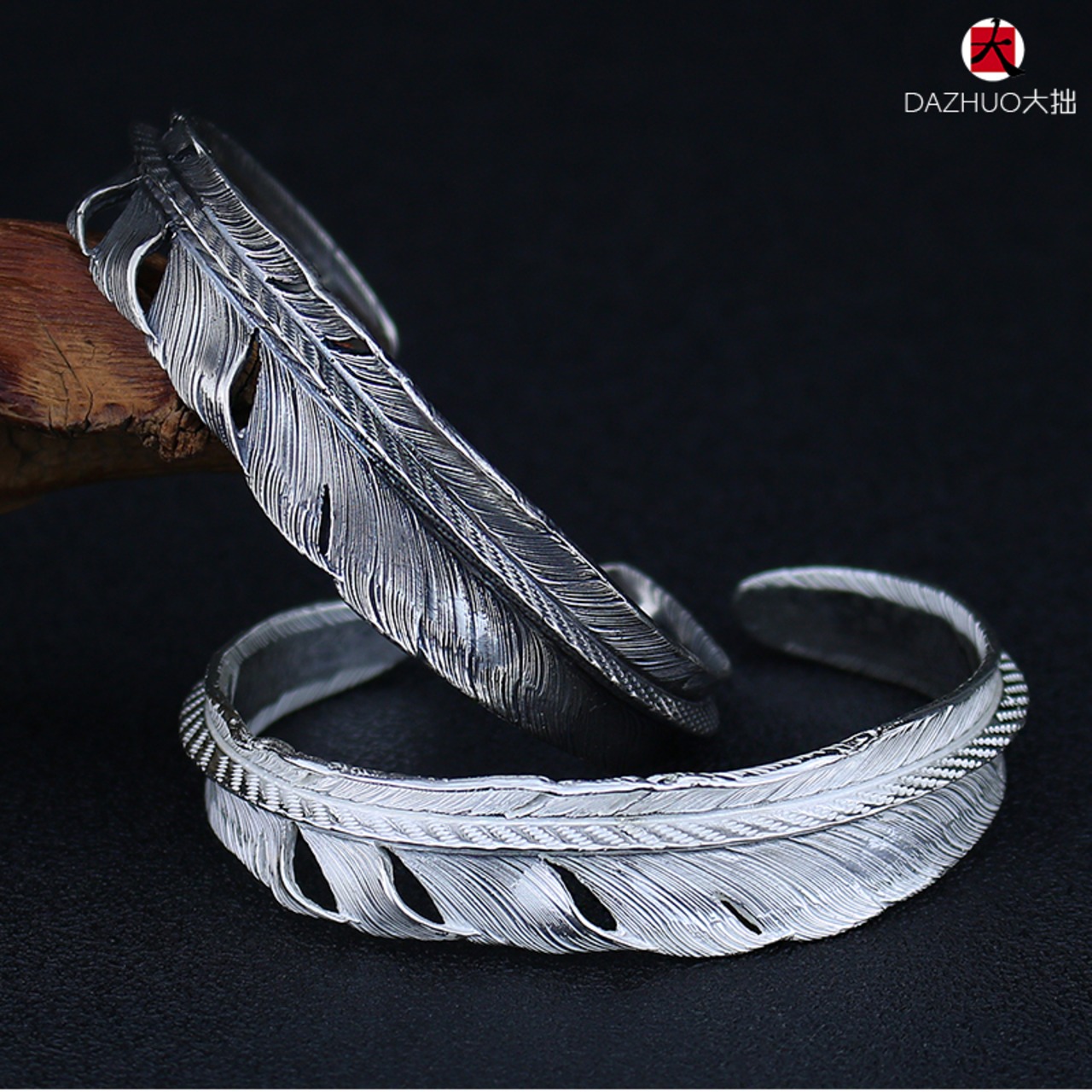 Big Hand Horizon ブルーナバホフェザーブレスレット 925 スターリングシルバービンテージオープンメンズブレスレットハンドメイドシルバーウェア