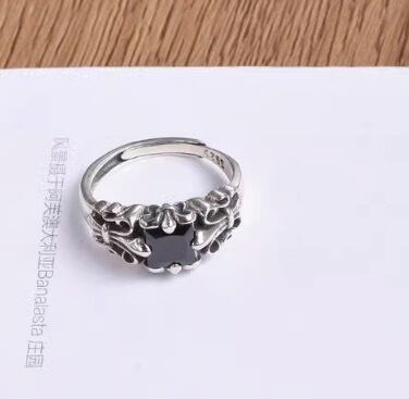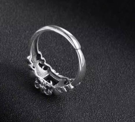 925シルバー男女兼用パーソナリティクロストレンディーレトロオープニングアジャスタブルリング男性用ニッチヒップホップブラックリング