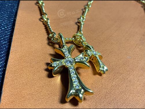 ムラグチアーティザンハンドメイド CH シルバーハートツイストチェーンフルゴールド 22K 竹鎖骨チェーンカップルネックレスカスタム