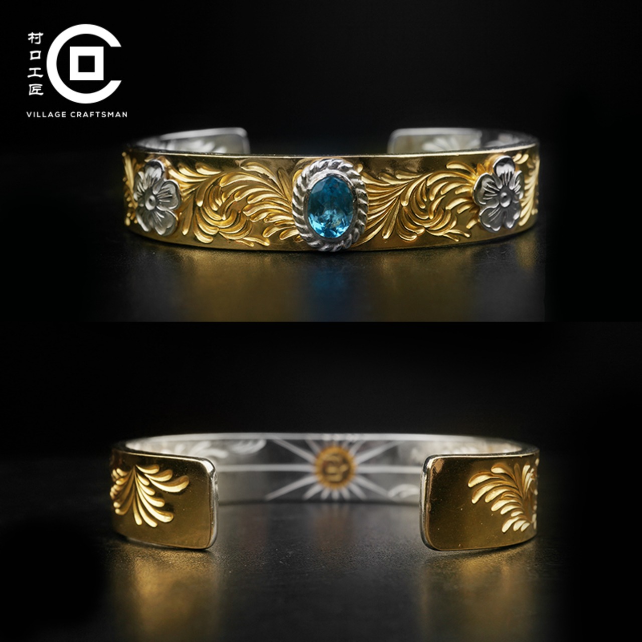 ムラグチ職人和紙太郎ハンドメイド内外アラベスクプラチナフラワーサファイアフライングバードレイステッカーゴールドフラットブレスレット