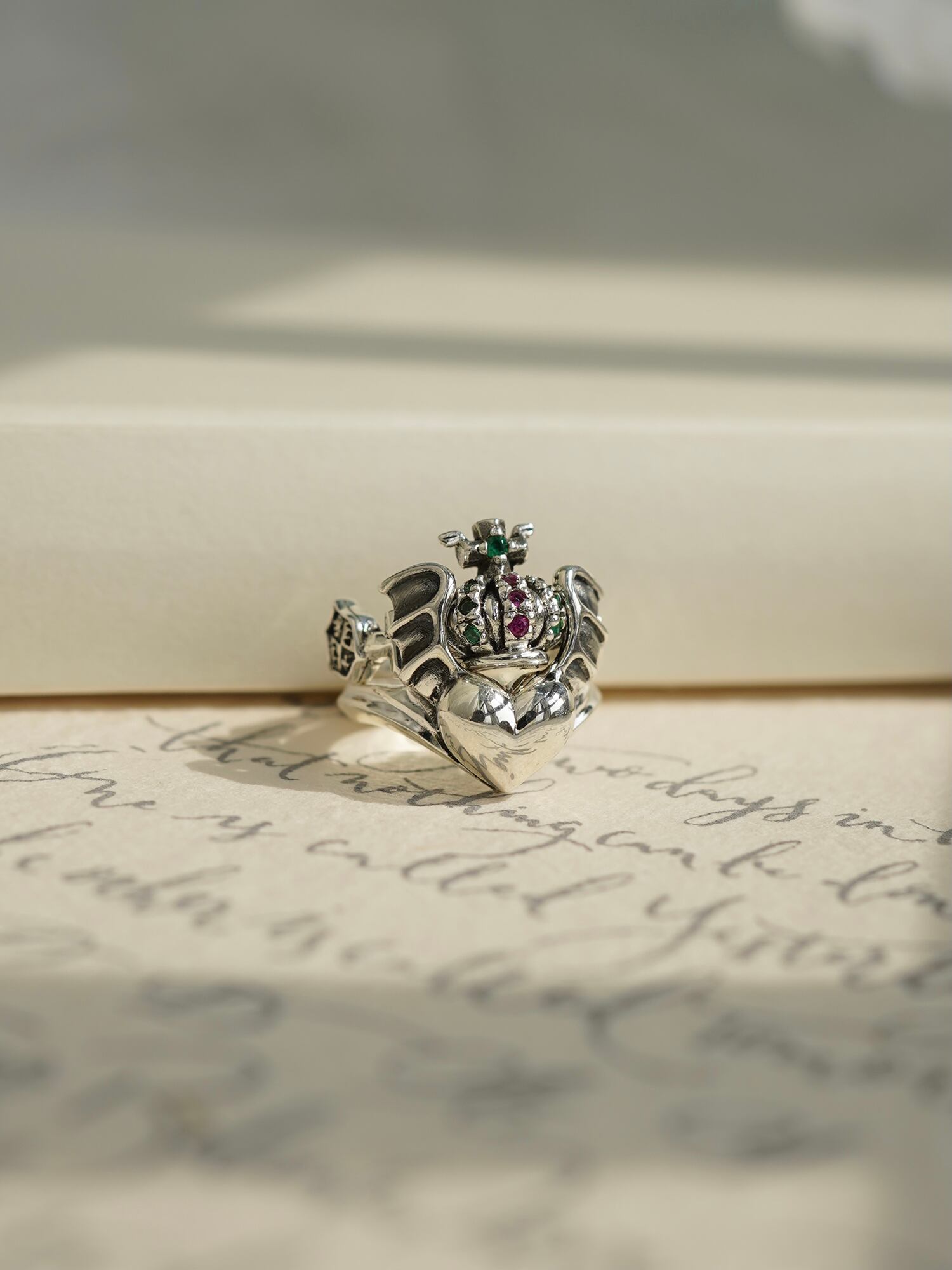Water Lily Birthplace 925 スターリングシルバーセットリングラブウィングスクロスクラウンジルコンエレメントリングは、美しく輝く925スターリングシルバーで作られています。華やかで個性的なデザインが魅力で、特別な日の装いにぴったりの一品です。