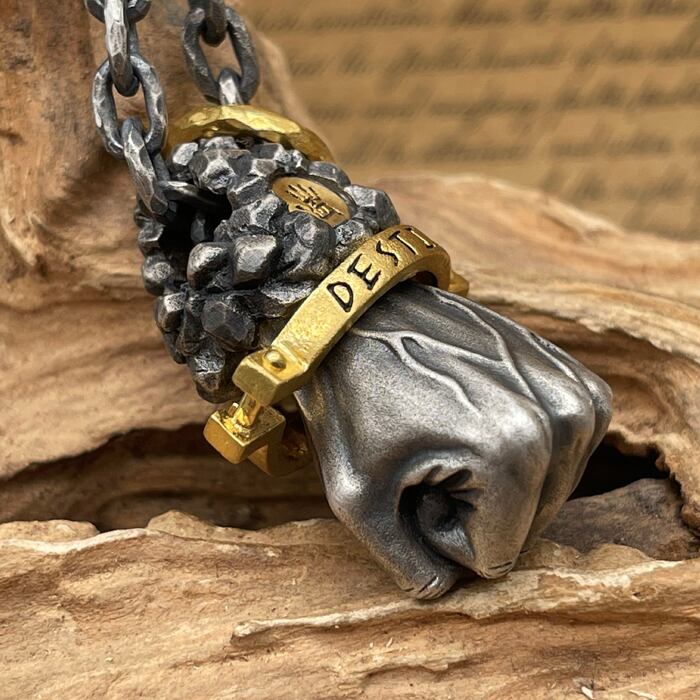 ハンドメイドオリジナルデザインカスタムシルバーウェア Fist of Fate 925 スターリングシルバーメンズペンダントネックレスペンダント