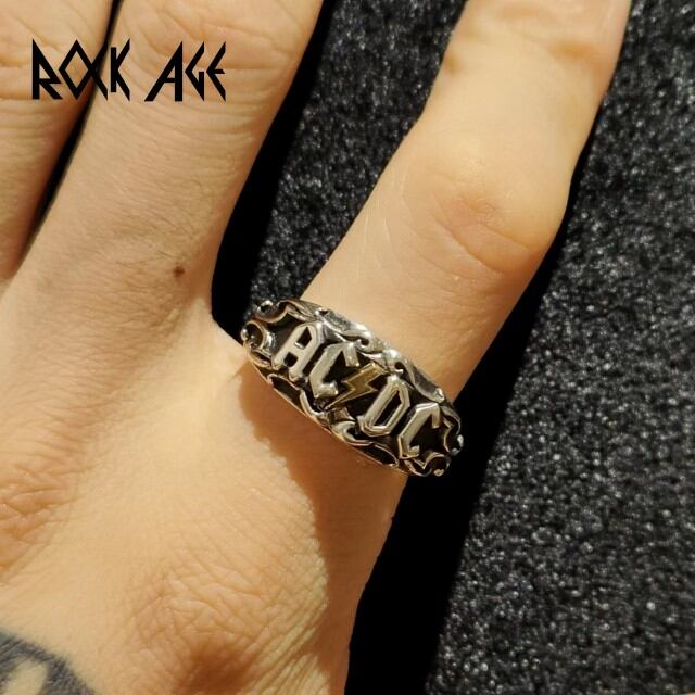 ロックエイジオリジナルシルバーウェアブランド S925 AC DC ハードロックバンド AC/DC ゴールドライトニングリング