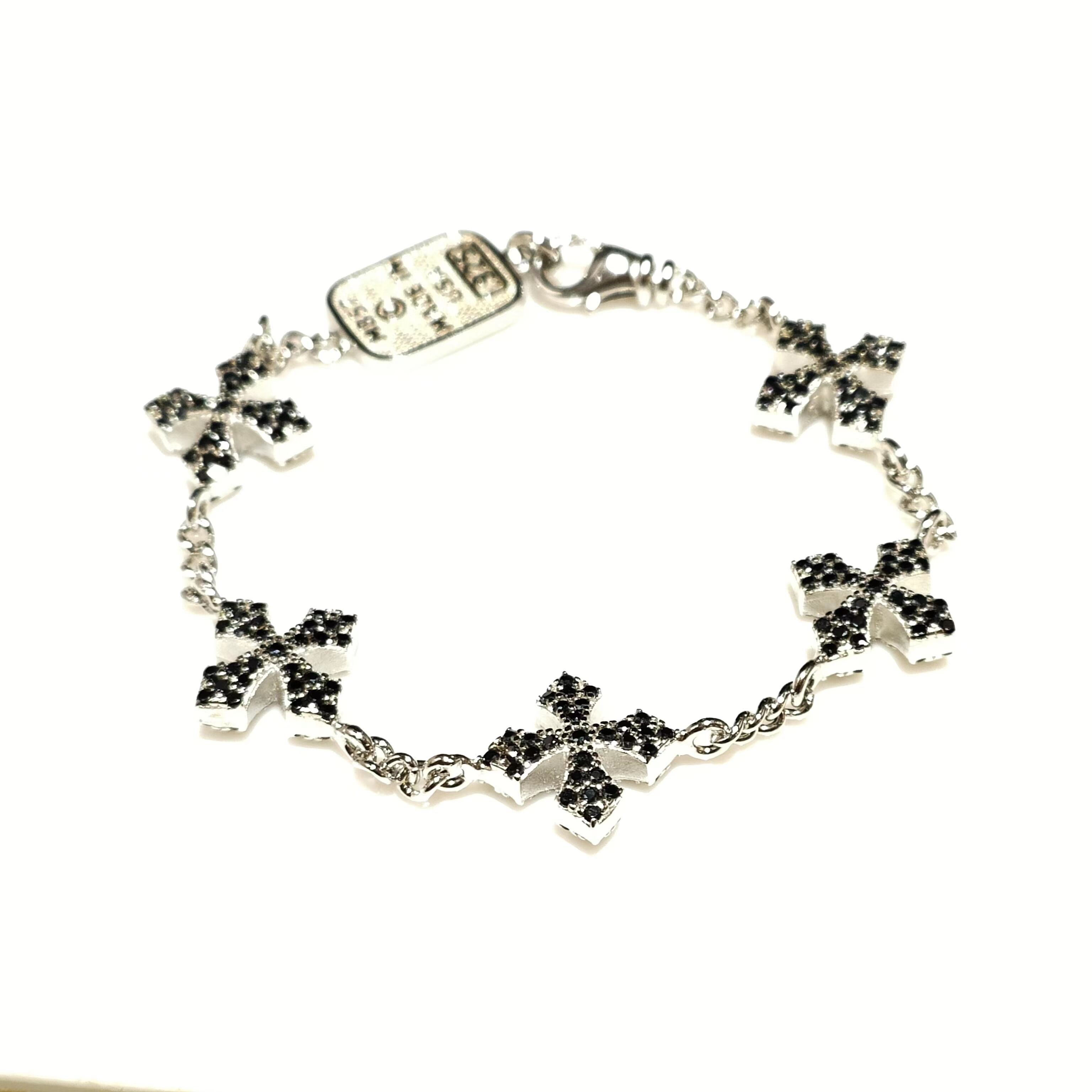 925 スターリングシルバー電気メッキ 18K ホワイトゴールド ROCKAGE クラシック MB クロス四つ葉のクローバー女神ブラックダイヤモンドパーソナリティブレスレット