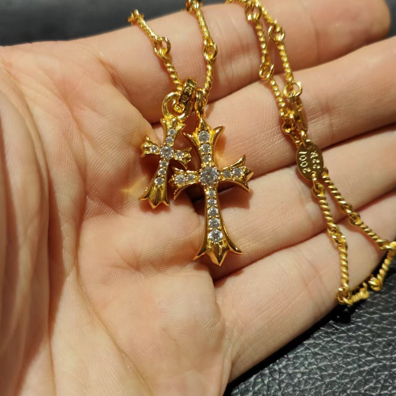 ROCKAGE スターリングシルバー S925 パンクスタイル 22K ゴールド電気メッキダイヤモンドダブルクロススターネックレスペンダント