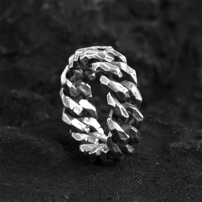 すべての男性に自信とスタイルを与えるXiranのオリジナルデザインハンドメイドシルバーウェア頑丈な機関車通気性のあるS925スターリングシルバー刻印入りキューバチェーンシルバーリング男性用。ぜひ、特別なプレゼントや自分へのご褒美にお選びください。