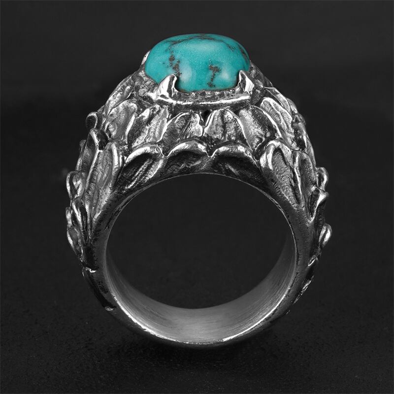 Xiranハンドメイド 925スターリングシルバー象眼細工生鉱石ターコイズドラゴンスケールリングオートバイフィットネスヘビーシルバービッグリング男性用