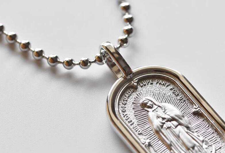 メキシコの伝統的な聖女、グアダルーペが刻まれた、聖なるキャラクターエンボス加工のスターリングシルバーペンダントです。聖なるエネルギーを感じる一点物のハンドメイドオリジナルファインクラフトです。シルバーの質感とエンボス加工が相まって、とても繊細な美しさを醸し出しています。