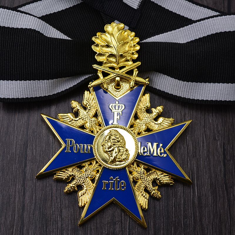 ロイヤリティ感漂うプロイセンクラウンオークリーフビッグブルーアイアンマルクスマルタクロスメリットブレイブリーメダルバッジ、戦士の魂が込められた一品です。