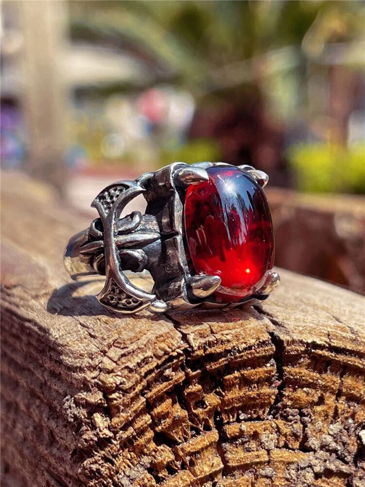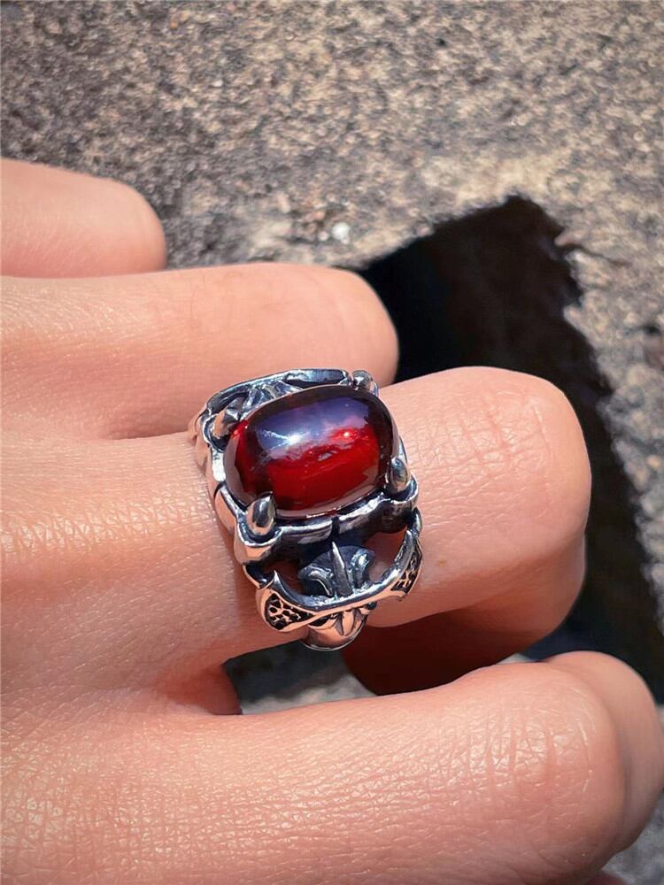 ロータスマウンテン、バイキングポセイドンのアイアンハンマー、ラージグレインフェイス、グアバガーネット、925シルバー、ヨーロピアン&アメリカンリング、ハンドメイドシルバー