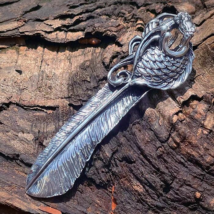 ロータスマウンテンと吉原の天才が作った東洋の伝統925スターリングシルバーフェザーペンダント