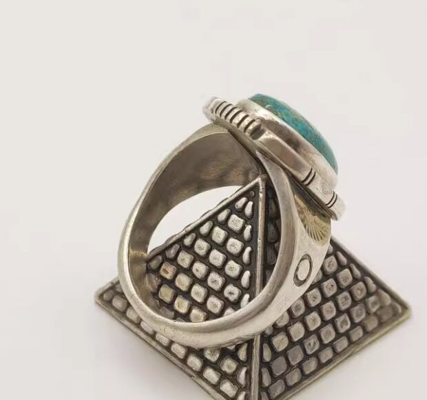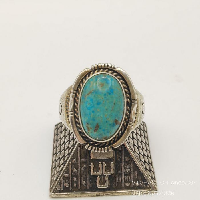 アメリカンインディアナ Oaho Tribe 天然ターコイズ 925 スターリングシルバースタンダードアメリカンレトロリング男性用サイズ 29