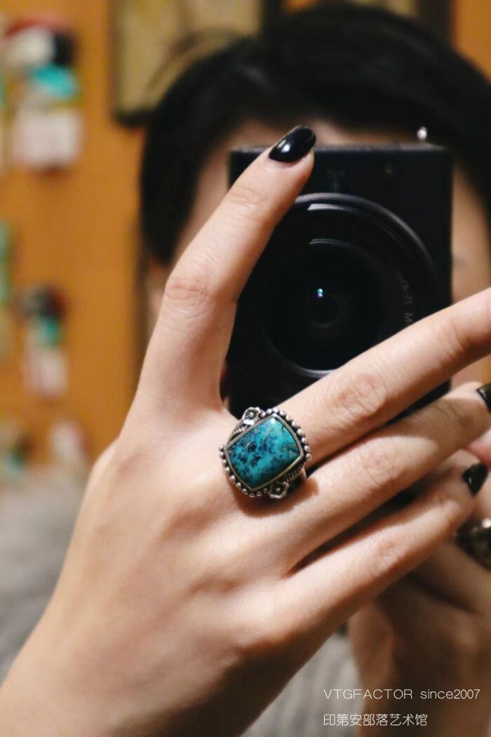 アメリカンインディアナ Oaho Tribe 天然ターコイズ 925 スターリングシルバースタンダードアメリカンレトロリング女性用サイズ 18