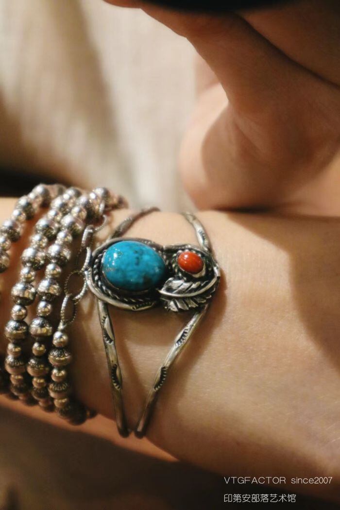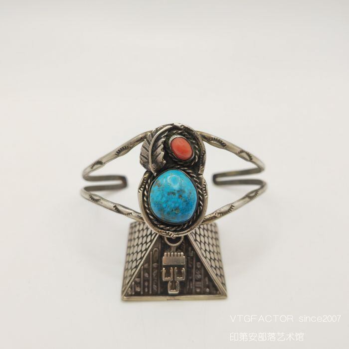 1960年代インディアナオアホートライブハンドメイド天然ターコイズコーラルスターリングシルバーアメリカンレトロバングルブレスレット