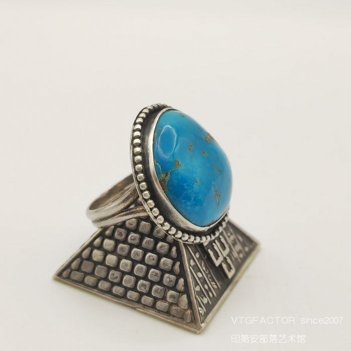 1970年代インディアナヴァホトライブナチュラルターコイズブルーパインスターリングシルバーアメリカンビンテージリング男女兼用サイズ 20