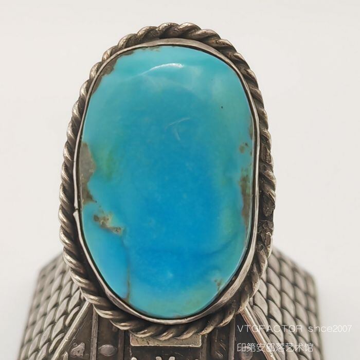 1970年代アメリカンインディアナワジョトライブナチュラルターコイズスターリングシルバーアメリカンビンテージリング女性用サイズ 12