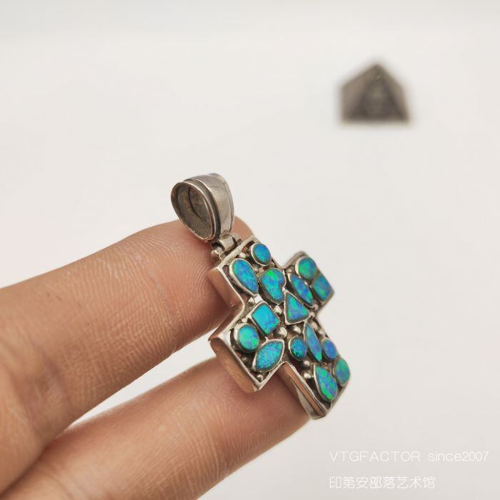 高品質な手作りの天然ブルーオパールを使用した、スターリングシルバーラベルアメリカンレトロパーソナライズクロスペンダントです。男女兼用でお使いいただけるデザインなので、大切な方への贈り物にも最適です。