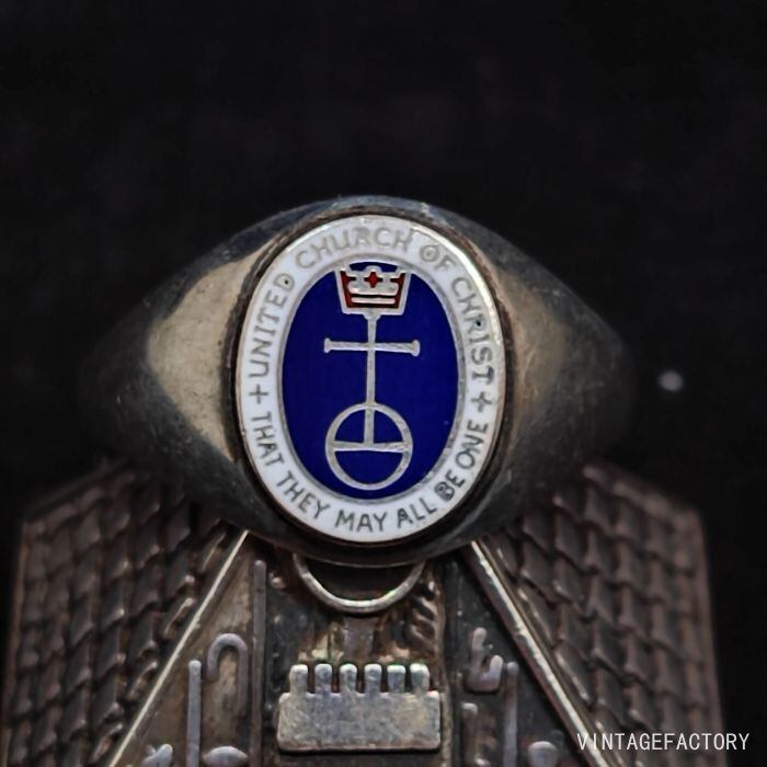 1960年代アメリカ世界カトリック連盟エナメルスターリングシルバービンテージアンティークコレクションリング男性用サイズ 23
