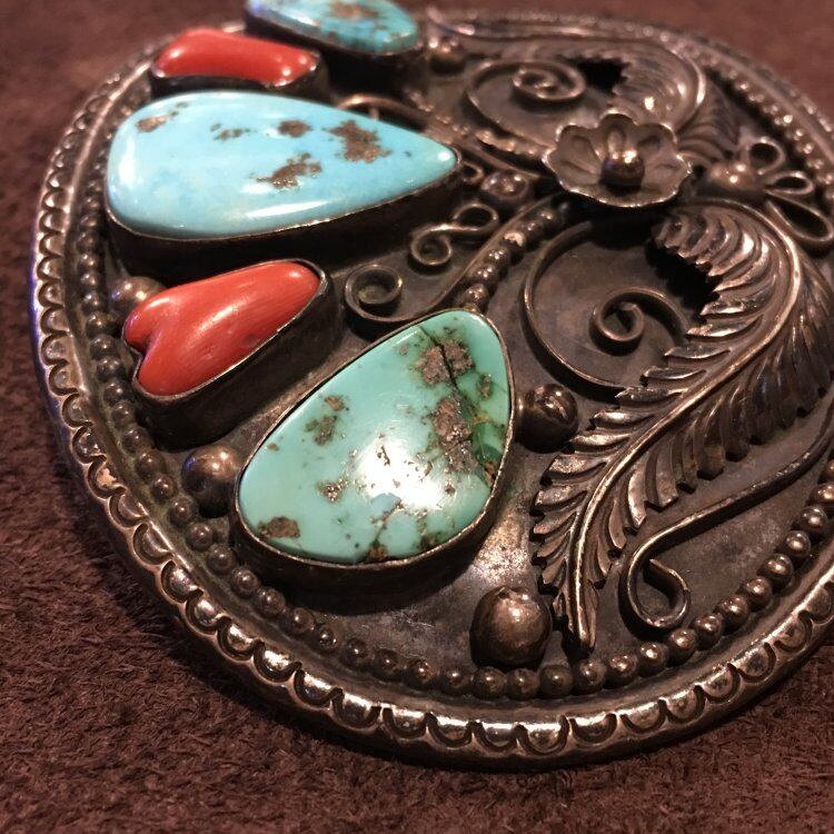 1960年代アメリカンインディアンインディアナワジョーターコイズコーラルスターリングシルバーヴィンテージアンティークベルトバックル