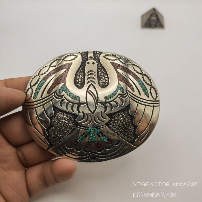 1970年代インディアナワジョトライブハンドメイドオーバーサイズペヨーテバードトーテムスターリングシルバーアメリカンビンテージベルトバックル