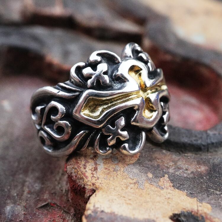 Ironhead Shop Abbwll クロスギルトリング 925 スターリングシルバーリングアラベスクシルバージュエリービンテージカップル