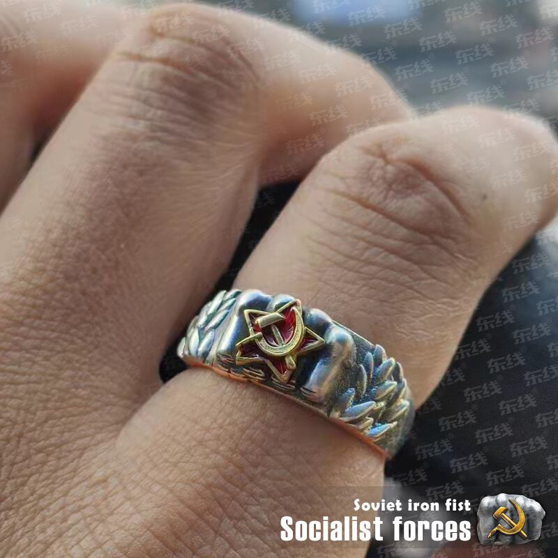 このリングは、個性的で力強いデザインが魅力です。ソビエト時代の歴史や社会主義思想に興味を持つ方にぴったりのアイテムです。リングの内側には、東部戦線オリジナルのロゴが刻印されており、細部にまでこだわりが感じられます。